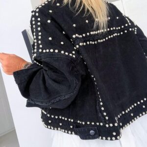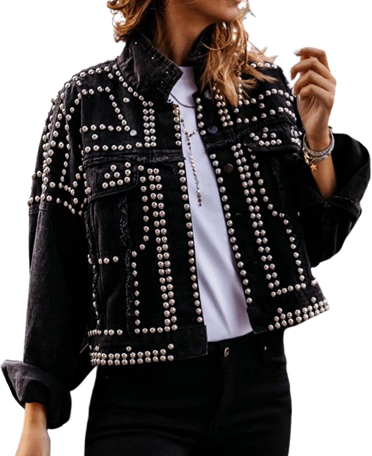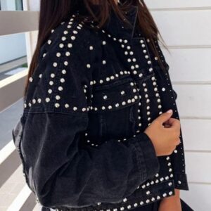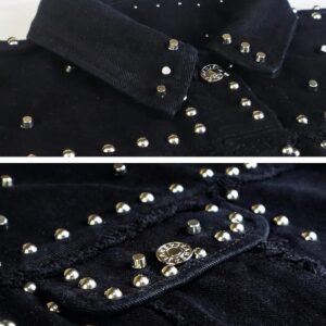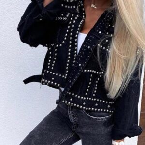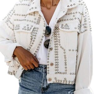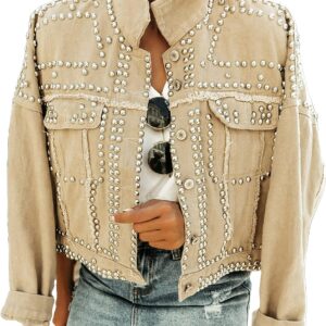 APAFES Women's Fashion Crop Studded Denim Jacket