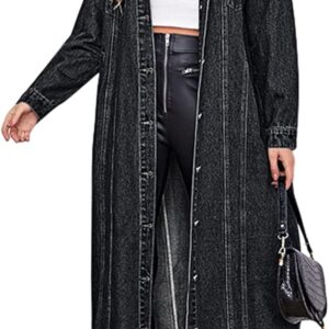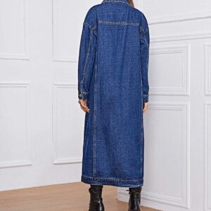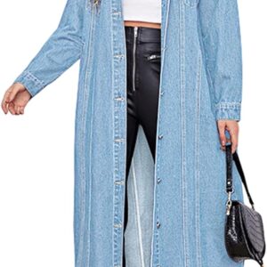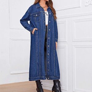 chouyatou Women’s Fashion Spring Button Down Midi Long Denim Jean Jacket Trench Coat