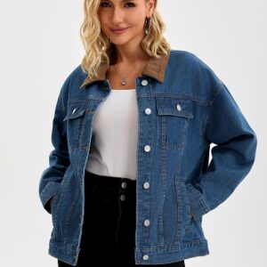Women's Denim Jacket Corduroy Collar Western Shacket