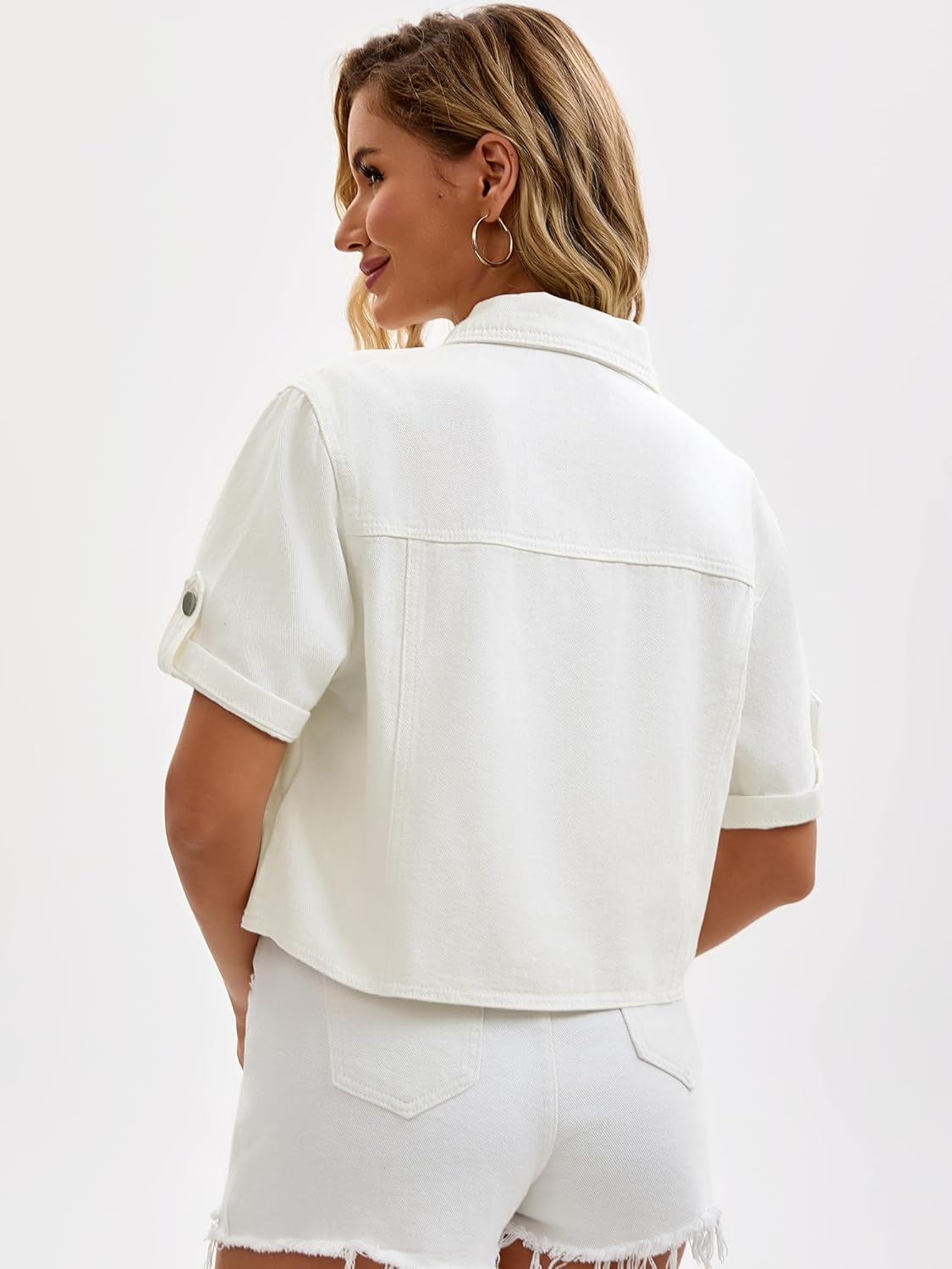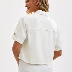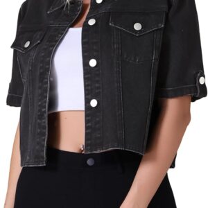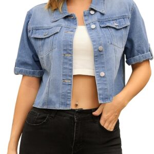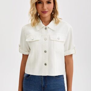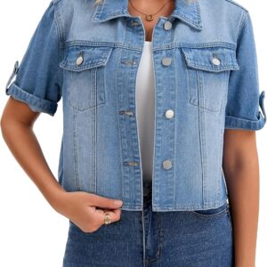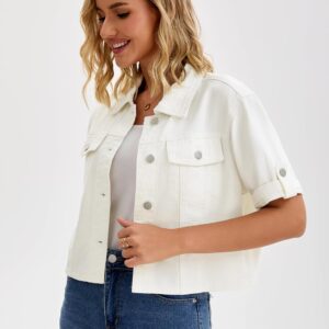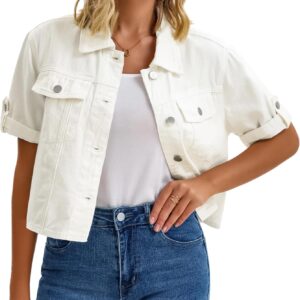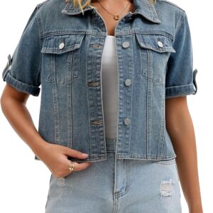 CIMUK Womens Short Sleeve Denim Jackets Collared Button Up Cropped Jean Jacket