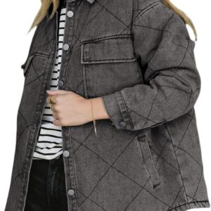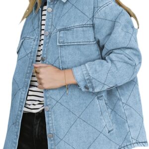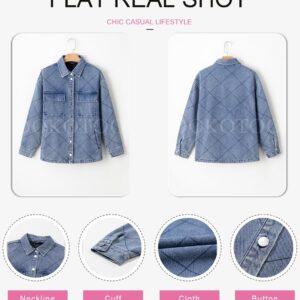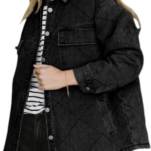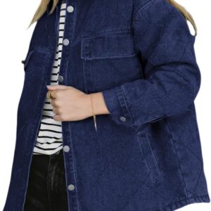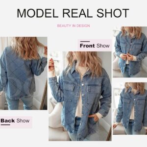 Dokotoo Denim Jacket for Women Fashion Solid Oversized Long Sleeve Button Down Shacket Jacket Coat with Pockets