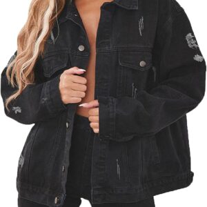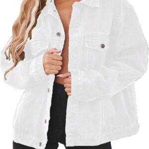 DvaeMalligo Jean Jacket Women Button Down Long Sleeve Oversized Denim Shacket