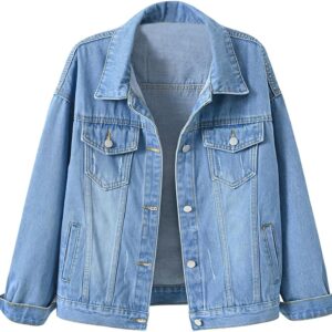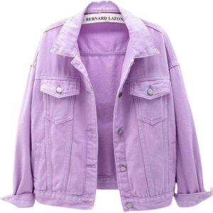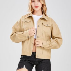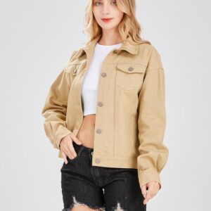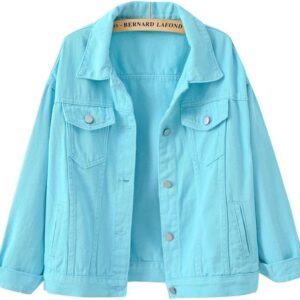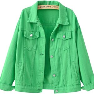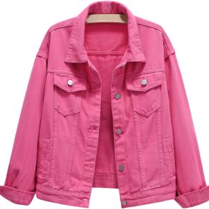 ebossy Women’s Candy Color Denim Jacket Relaxed Fit Casual Jean Trucker Jacket