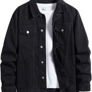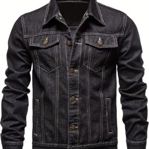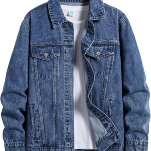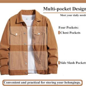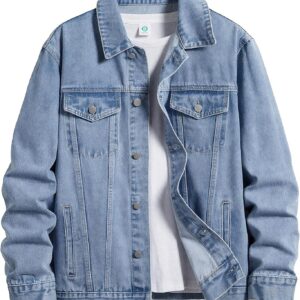 ESDVQ Men’s Denim Jacket Vintage-Inspired Jean Jacket with Multiple Pockets – Cotton Blend, Machine Washable