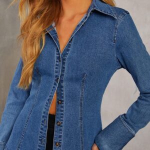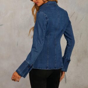 EZAPINE Denim Shirt Tops for Women Button Down Slim Fitted Long Sleeve V Neck Lightweight Jean Jackets