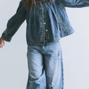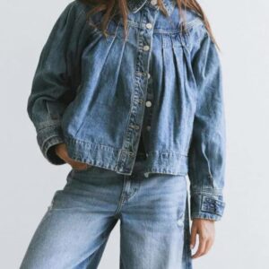 fitted yet full of personality, it has the classic look of a regular denim jacket, with a chic pleated detail, making it a versatile wardrobe staple