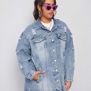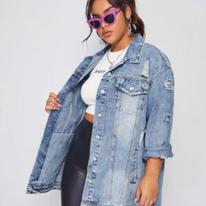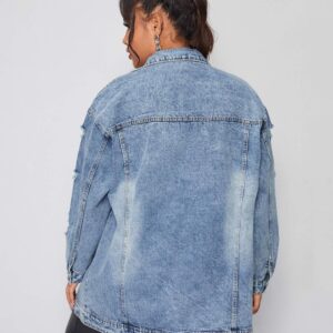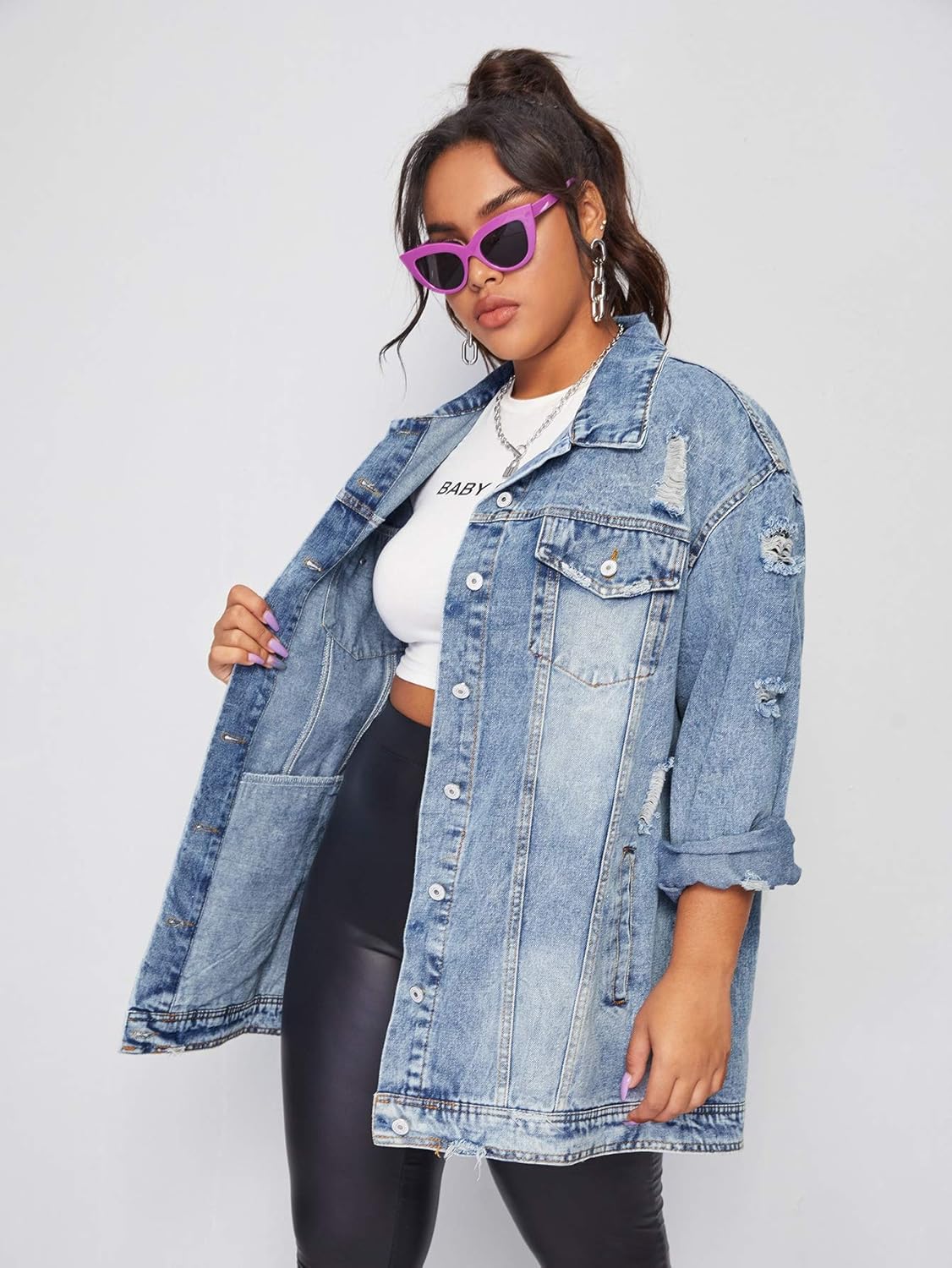 Floerns Women’s Plus Size Ripped Distressed Long Sleeve Denim Jacket
