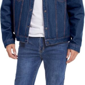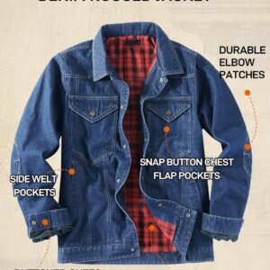 Flygo Mens Flannel Lined Denim Jacket Snap Cowboy Cut Western Classic Slim Fit Vintage Heavy Duty Jacket Trucker Coat(NavyBlue-XL)