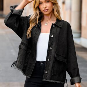Glamaker Womens Jean Jackets Cropped Casual Denim Jacket Button Down Vintage Loose Frayed Hem Fall Coat with Pockets