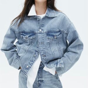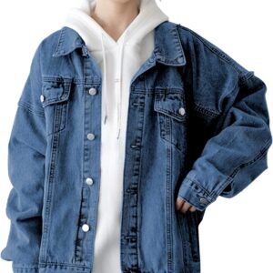 Hixiaohe Oversized Jean Jacket Women Fashion Long Sleeve Button Down Denim Jacket Loose Boyfriend Trucker Jean Coats