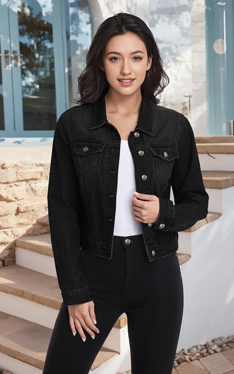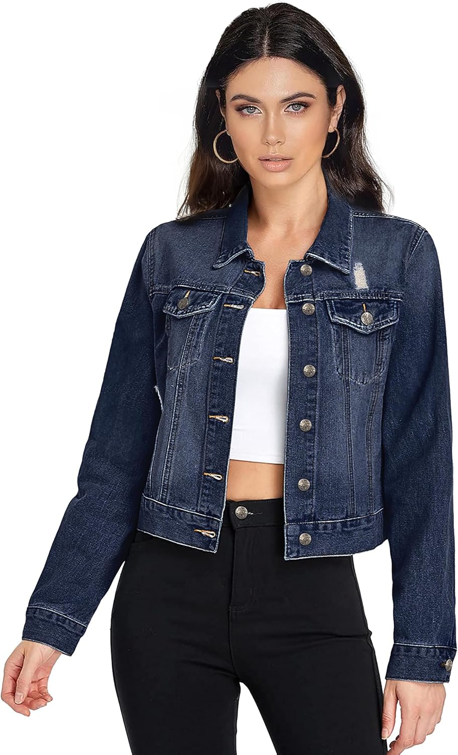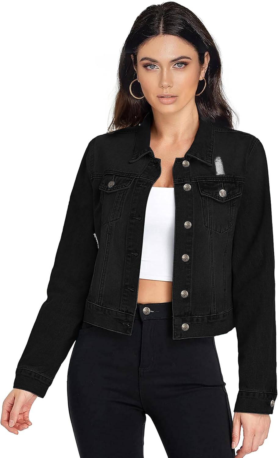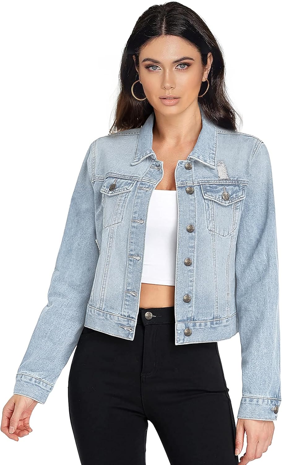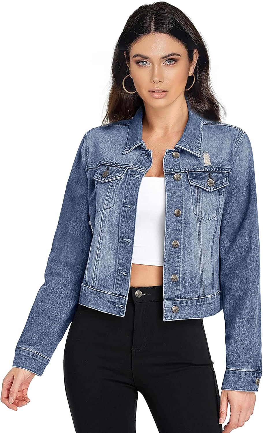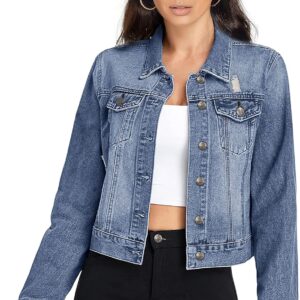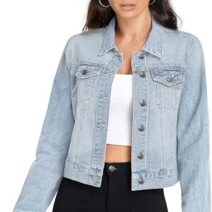 Hybrid & Company Women’s Long Sleeve Denim Jackets Basic Button Down Jean Jacket with Pockets