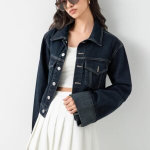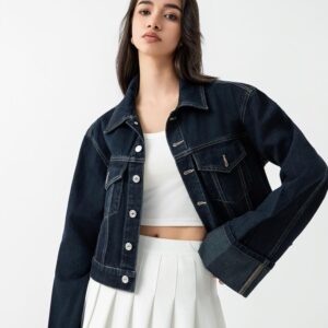 Whether layered over a slouchy tee for downtown cool or paired with high-waisted trousers for polished ease, its versatile shortness ensures a tailored look without sacrificing movement.
