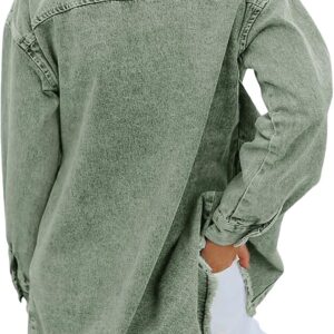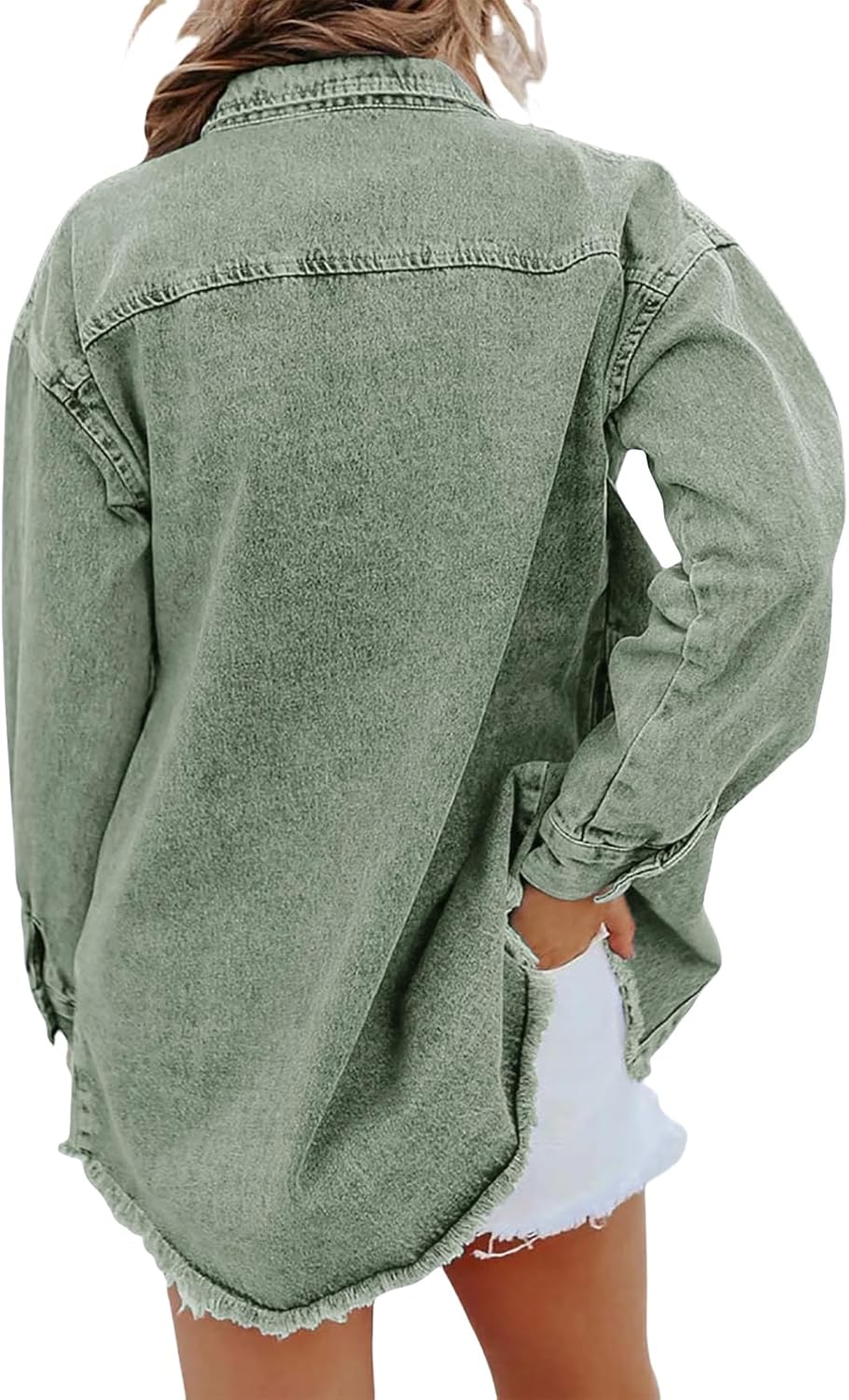 Jean Jackets for Women Oversized Button Up Frayed Hem Shacket Casual Long Sleeve Denim Jean Jackets Coat with Pockets