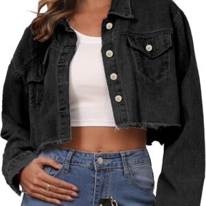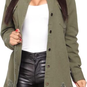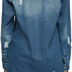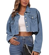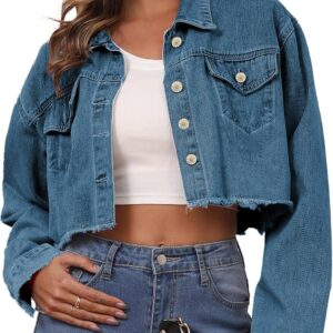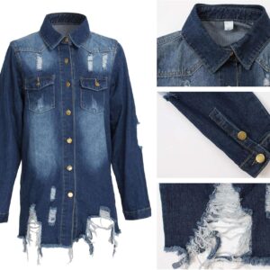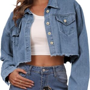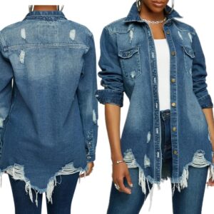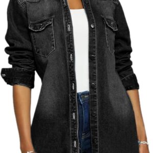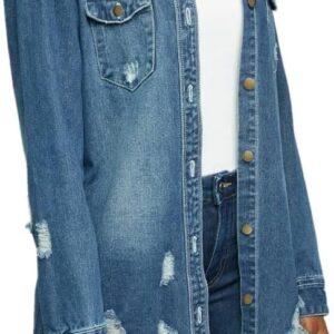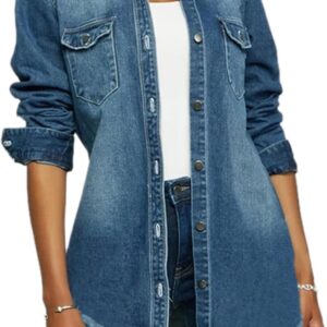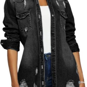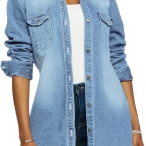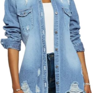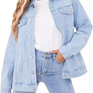 LaiyiVic Denim Jacket for Women Long Sleeve Classic Distressed Trucker Jean Jackets