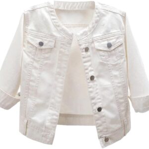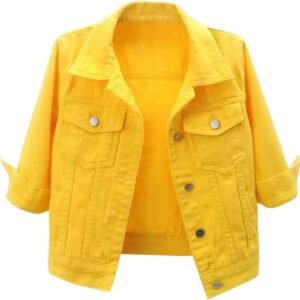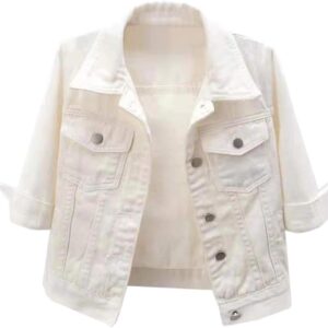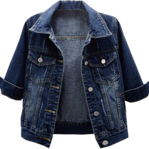 LifeShe Women’s 3\/4 Sleeve Short Denim Jacket Light Cropped Jean Jackets Coats