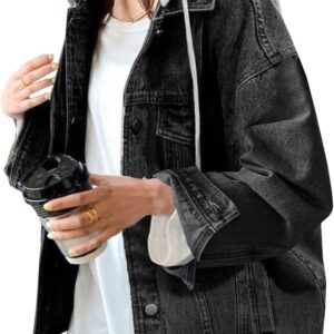LifeShe Women’s denim jacket with hood oversized distressed jean jackets hoodie