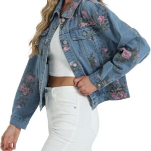 LifeShe Women’s Jean Jacket Floral Button Up Cropped Denim Jackets Western Outfit With Pockets