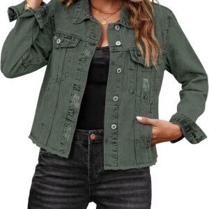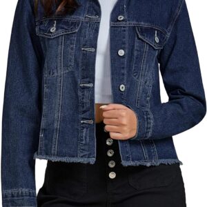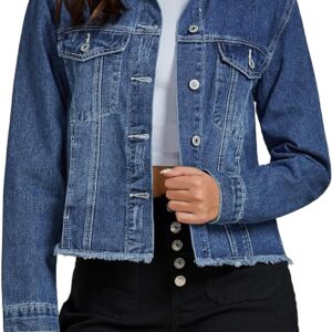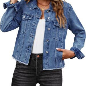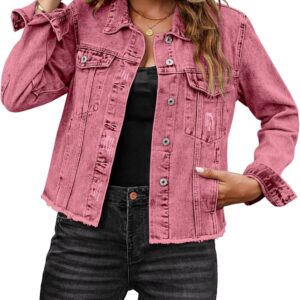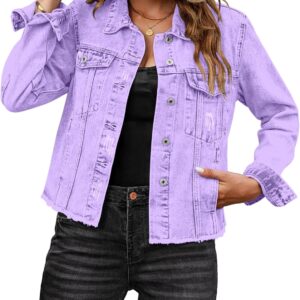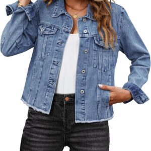 luvamia Denim Jacket for Women Distressed Jean Jackets Button Up Vintage Western Trucker Jacket Frayed Hem Pockets