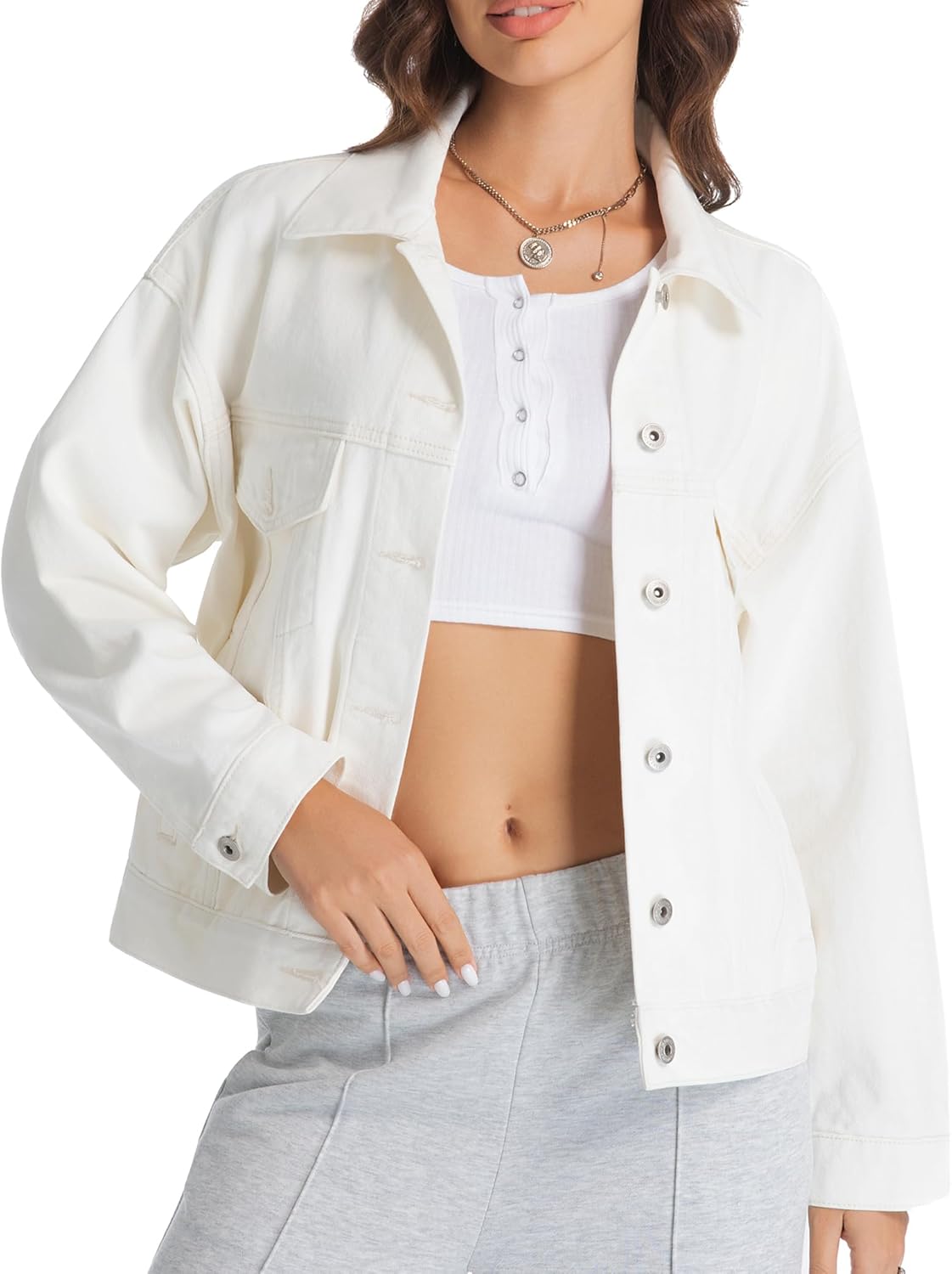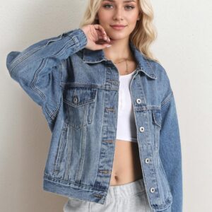 Mefija Women’s Denim Jackets Long Sleeve Loose Fitted Jean Jacket Coats with Pocket 2025