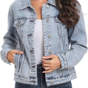 MISS MOLY Women’s Denim Jacket Button Up Long Sleeve Basic Trendy Jean Jacket Coat with Pockets