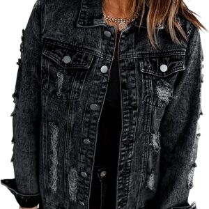 Necooer Women’s Jean Jacket Distressed Washed Button Up Boyfriend Denim Jacket Coat With Pockets