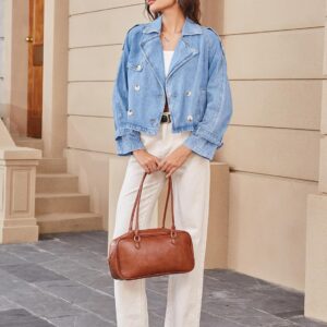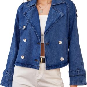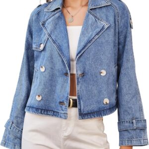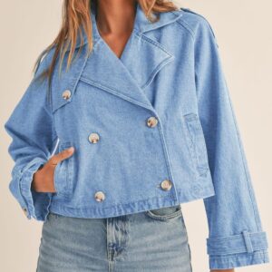 Nitzana Denim Jacket for Women Cropped Trench Coat Double Breasted Lightweight Jean Jackets Casual Outerwear 2025 Trendy