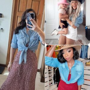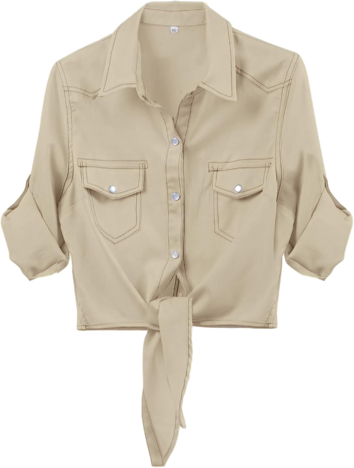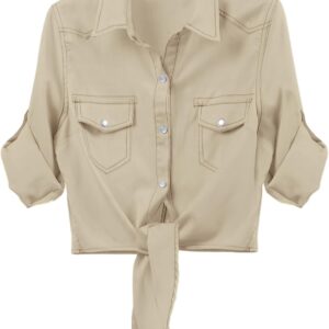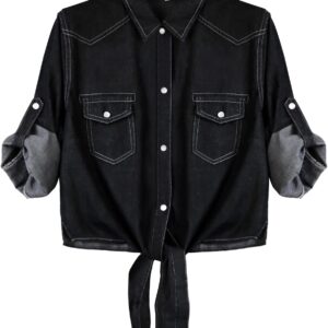 Omoone Women’s 3\/4 Sleeve Denim Crop Top Tie Knot Shirt Cardigan