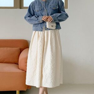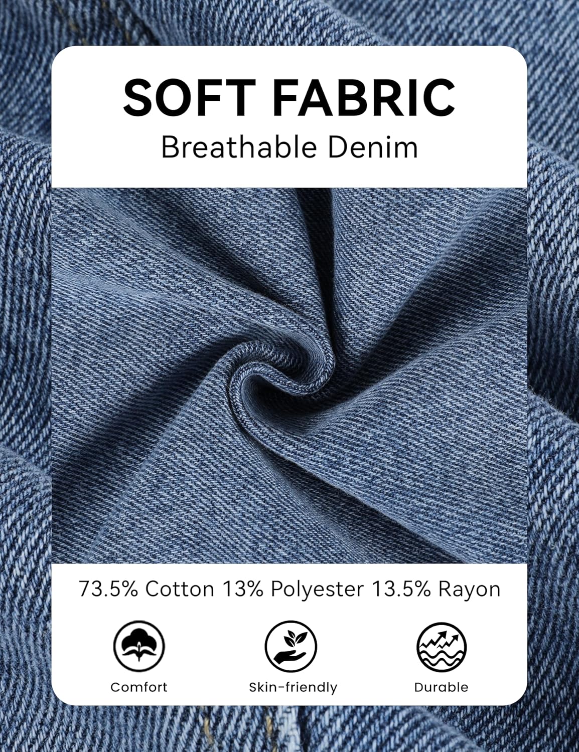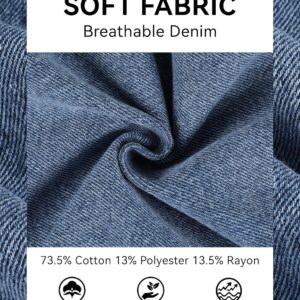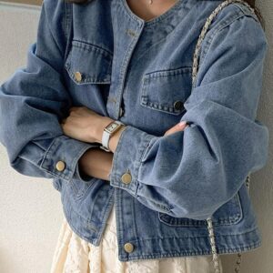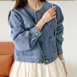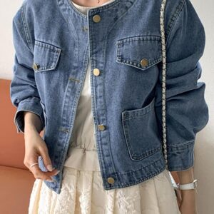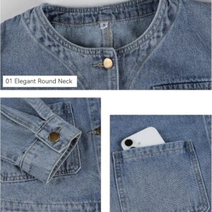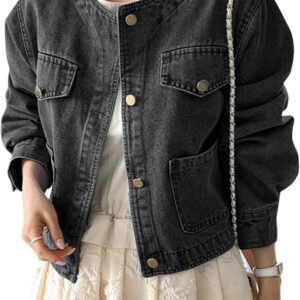Omoone Women’s Denim Jacket Long Sleeve Crop Button Down Collarless Jean Coat with Pocket