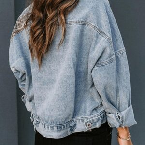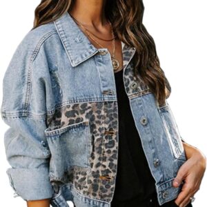 RINTONIX Womens Button Down Distressed Leopard Denim Jean Jacket Washed Long Sleeve Ripped Cheetah Jean Coat