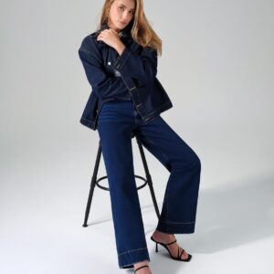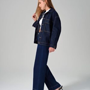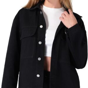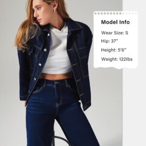 roswear Denim Jacket Coat for Women with Flap Chest Pockets Casual Oversized Jean Jackets