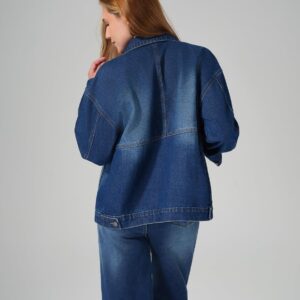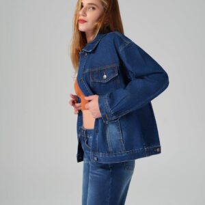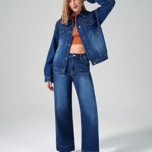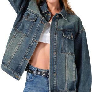 roswear Jean Jacket Women Oversized Long Sleeves Button Up Washed Denim Western Jackets Trucker Coat