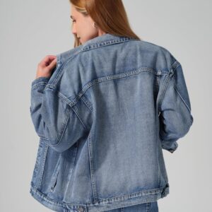 roswear Women\u2019s Denim Jackets Oversized Button Long Sleeve Washed Jean Trucker Jacket with Pockets