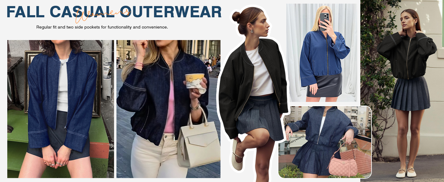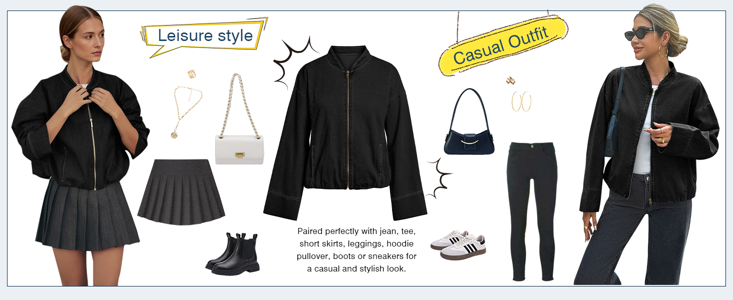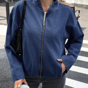 Tankaneo Womens Denim Bomber Jacket Zip Up Cropped Lightweight Jean Jacket Fall Casual Outerwear with Pockets quantity