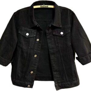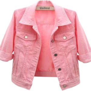 Unilexi Women's 3/4 Sleeve Colored Cropped Denim Jacket Light Wash Short Jean Jacket Trucker Coat