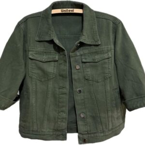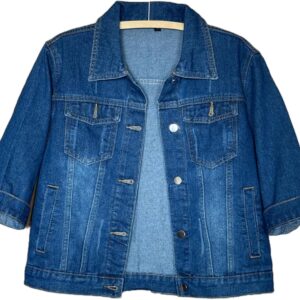 - Turn down collar, 3/ 4 Sleeve, Crop jean jacket