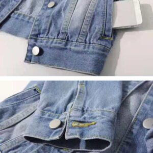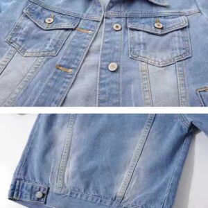 - DarkBlue denim jacket, LightBlue denim jacket, and Gray denim jacket all feature RIPS DESIGN on the front and back, but it's not really cracked open.