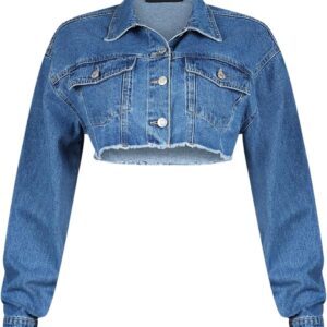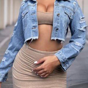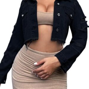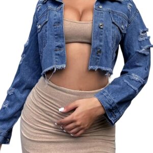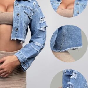 Women’s Ripped Short Jean Jacket frayed Casual Denim Jacket Tops
